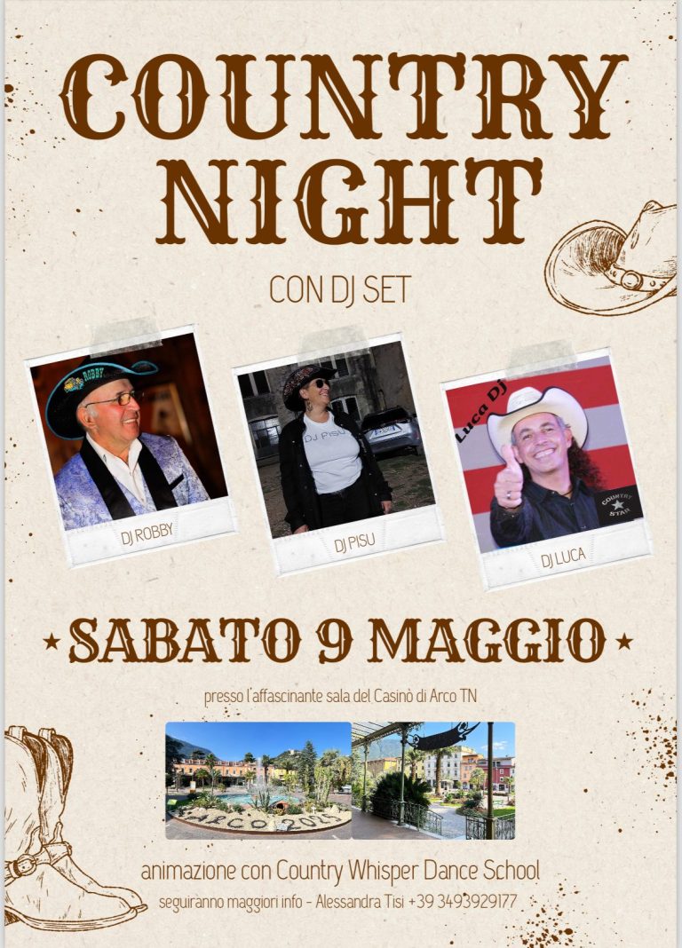 La serata country presso la città di Arco promette di essere un evento indimenticabile, caratterizzato da un'atmosfera festosa e coinvolgente.